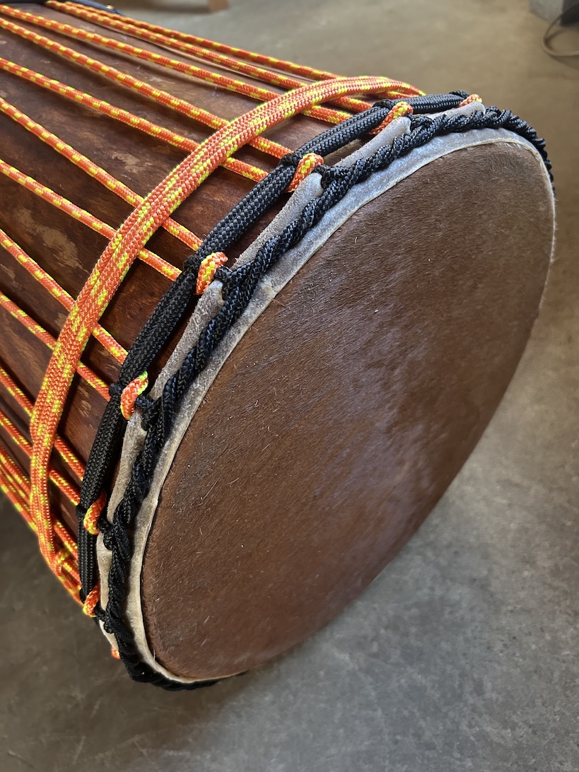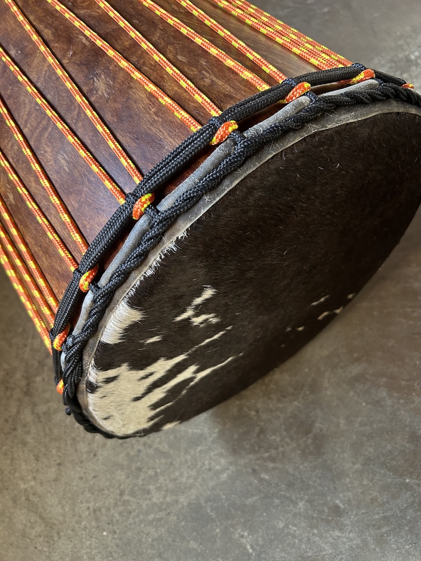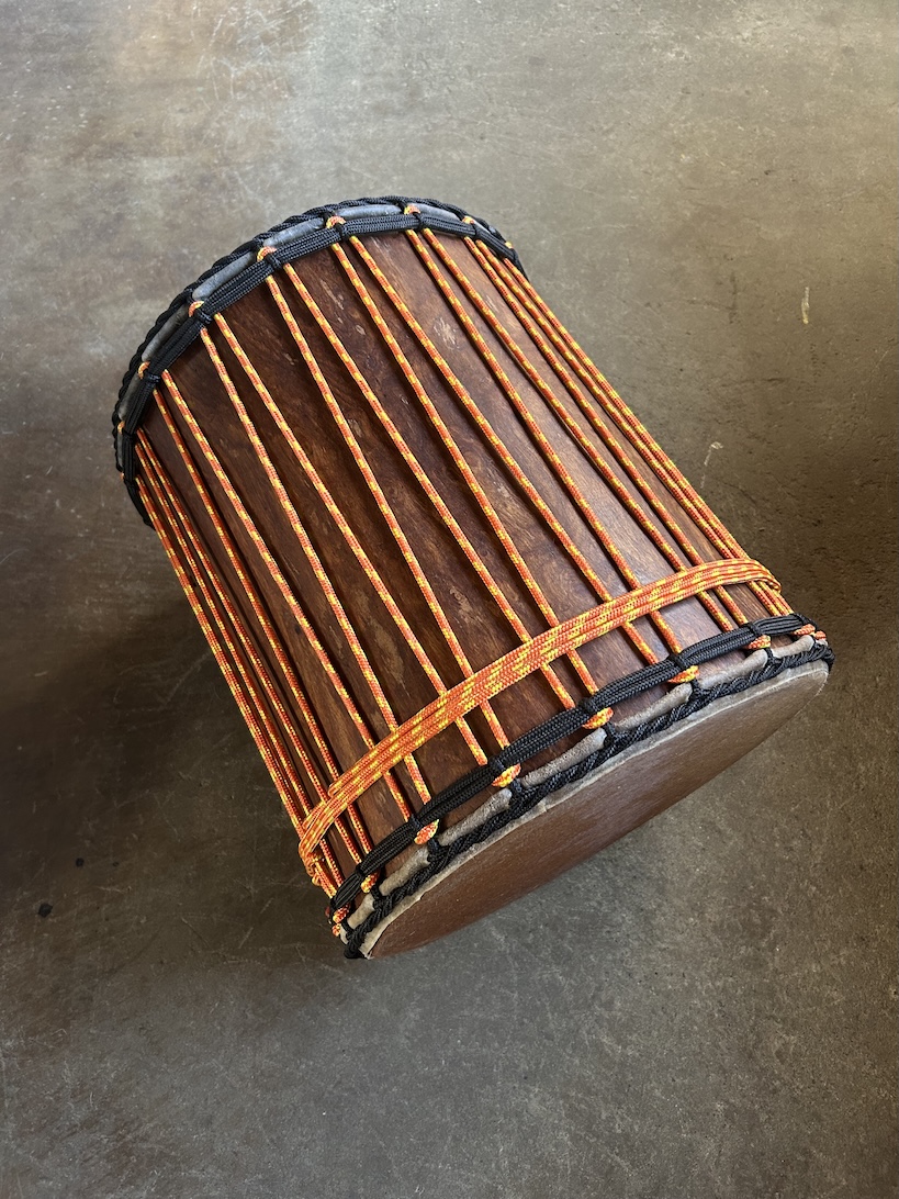 Balafon Woodのコンパクトなサイズ感のドゥンドゥンセットはかなり希少価値あり。鉄リングを一切使わないトラディショナルスタイルで張ってある為ボディー鳴りがしっかりしていてその鳴りもバラフォンウッド特有の煌びやかな倍音が魅力です。