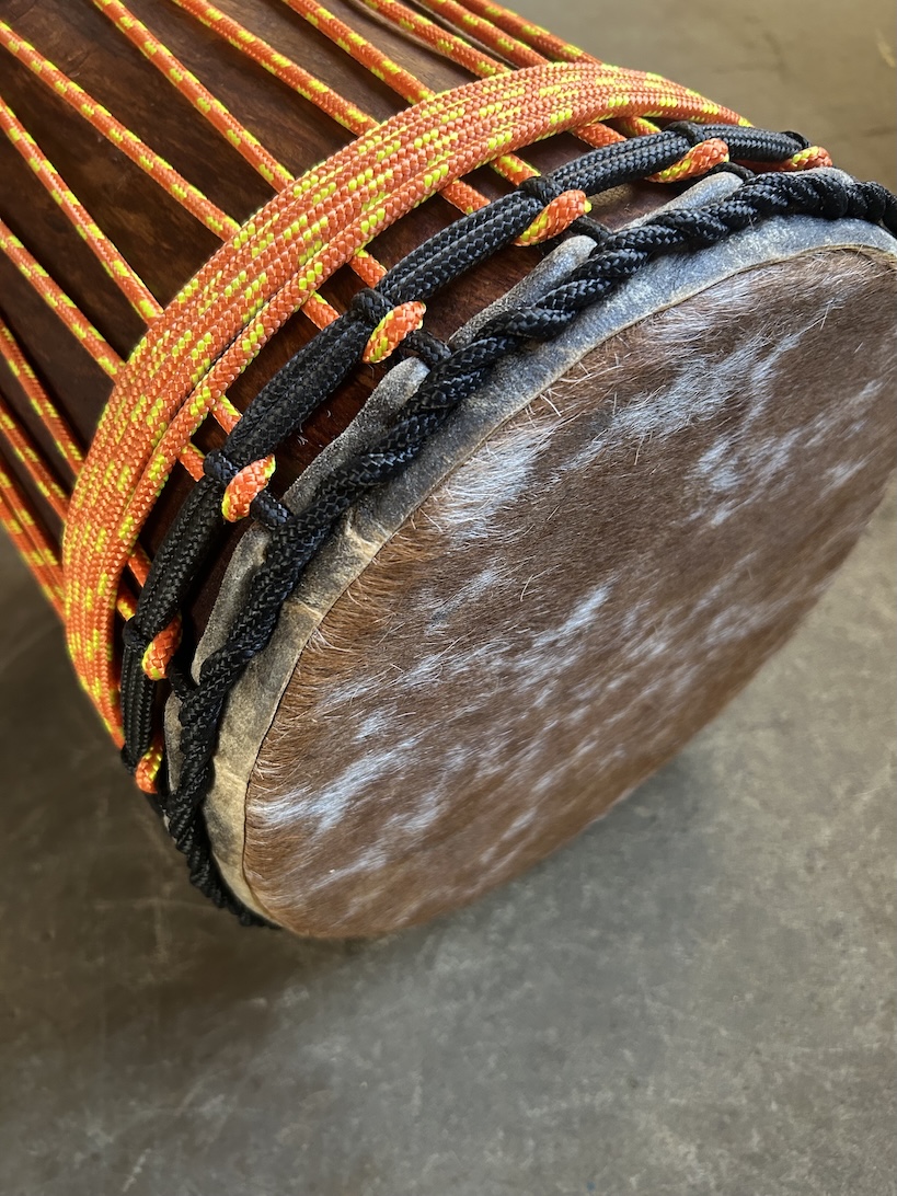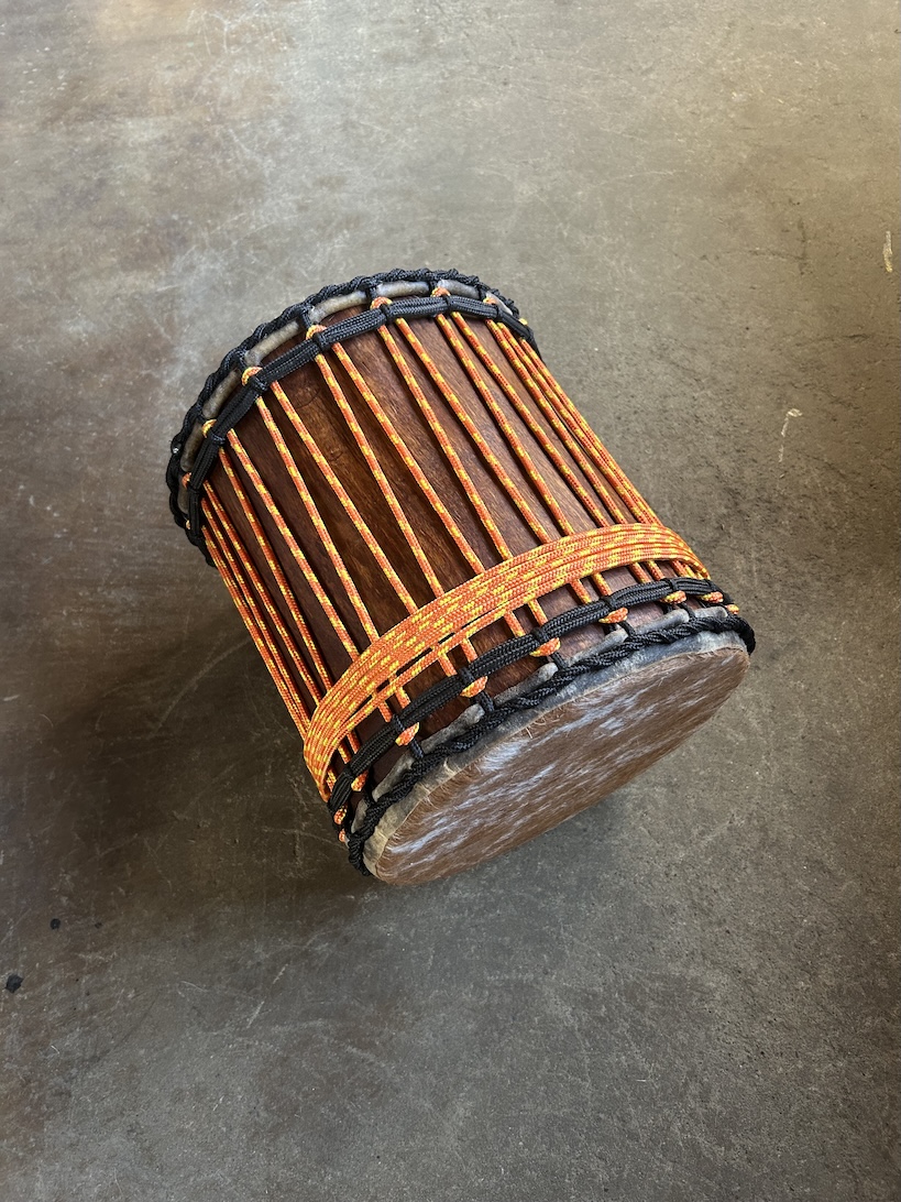 Balafon Woodのコンパクトなサイズ感のドゥンドゥンセットはかなり希少価値あり。鉄リングを一切使わないトラディショナルスタイルで張ってある為ボディー鳴りがしっかりしていてその鳴りもバラフォンウッド特有の煌びやかな倍音が魅力です。