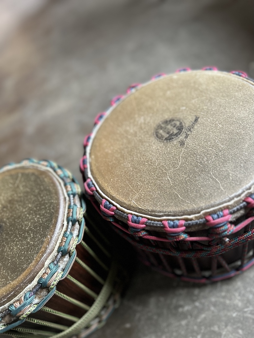 マリ製のボンゴをバラしてLPのコンガヘッドをリユースしてドゥンドゥン仕様にしました。